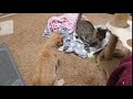 Harvest was the last to be caught, taking a day longer than her 3 siblings, but the first to start learning to trust humans. She's a petite little gal who loves to play with her sisters and brother and enjoys attention from her human foster momma. Because of the months spent living with very little human interaction, it takes time for Harvest to warm up to new people and feel comfortable around them. She can also startle easily with new sounds or loud noises. For these reasons, Harvest would benefit from a home without a lot of noise or chaos. It would also be best for her to be adopted with one of her litter mates, as they all seek comfort from one another. (
